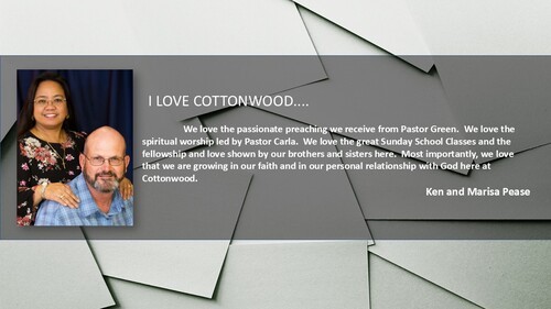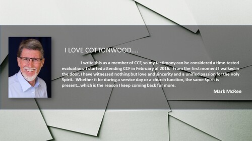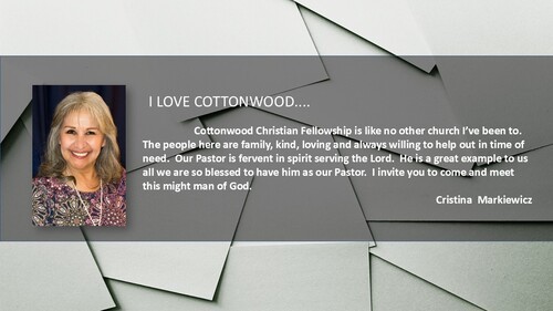 Cottonwood Christian Fellowship is a place where people can meet Jesus, engage in life-giving community, and everyone is welcome. We believe in creating a space where people can have authentic encounters with Christ, discover their gifts and use them for God's glory. Join us for our Sunday services!